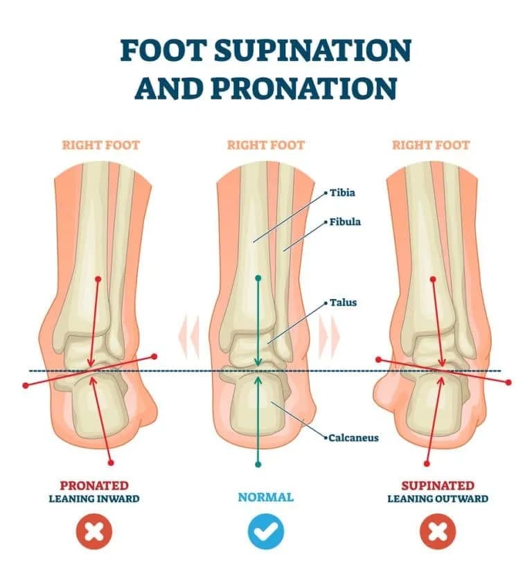 Cái quan trọng đối với một đôi giày với tôi thật ra là khả năng nó đáp ứng được bài chạy một cách phù hợp. Lắm đôi nảy quá, về đau hết đùi với bắp chân vì lực phản chấn qua mỗi bước chạy. Có đôi lại mềm đế quá làm cổ chân bị đổ nom rất khiếp (và quả thực nó làm đau cổ chân). Có giai đoạn cách đây 3 năm, tôi bị viêm bao hoạt dịch khớp cổ chân trái, và nó sưng tướng cái cổ chân, mắt cá lên như bị phù vậy. Đi lại không đau, chạy nhảy bình thường, nhưng nó cứ sưng như vậy đấy… Cuối cùng, tôi phát hiện hoá ra là do đôi giày đế mềm quá nó làm cổ chân bị đổ chéo vào trong khi tiếp đất (như hình minh hoạ kia thì là chân tôi bị như trường hợp bên trái ở hình minh hoạ)