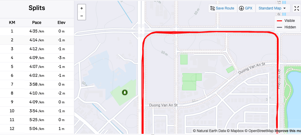 Bài tập làm quen với giày rất hứng khởi! Sau khi khởi động, tôi bắt đầu với một mức vừa phải. Tôi không muốn chạy quá chậm ở những km này bởi đây không phải là đôi giày được thiết kế cho việc chạy chậm (mà với tôi chậm ở đây là chậm hơn 5:25 - pace easy của tôi).