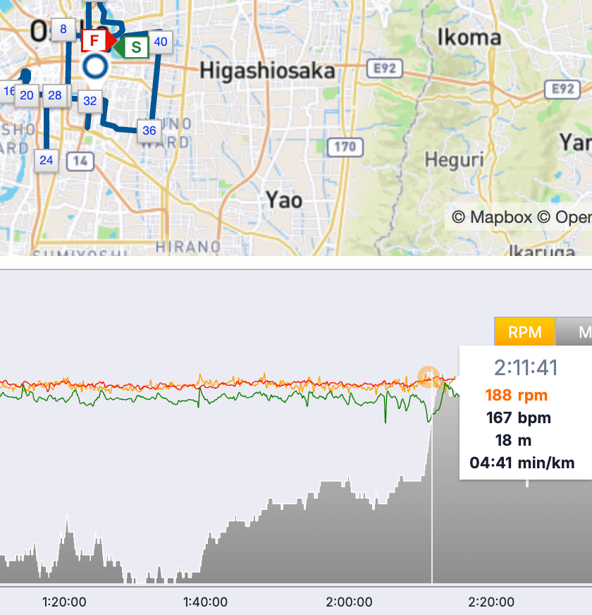 Mắt tôi cứ dáo dác… tìm vợ. Bởi tôi nhớ ra, trong suốt quãng đường từ km 39 đến 41 tôi chưa nhìn thấy vợ tôi. Chúng tôi đã hẹn trước sẽ gặp nhau trên đường chạy, và cô ấy có thể quay cảnh tôi chạy những bước tuyệt vời trên đường chạy ở Osaka trước khi về đích.